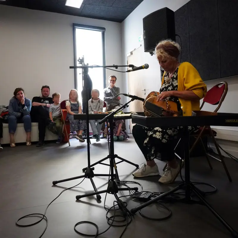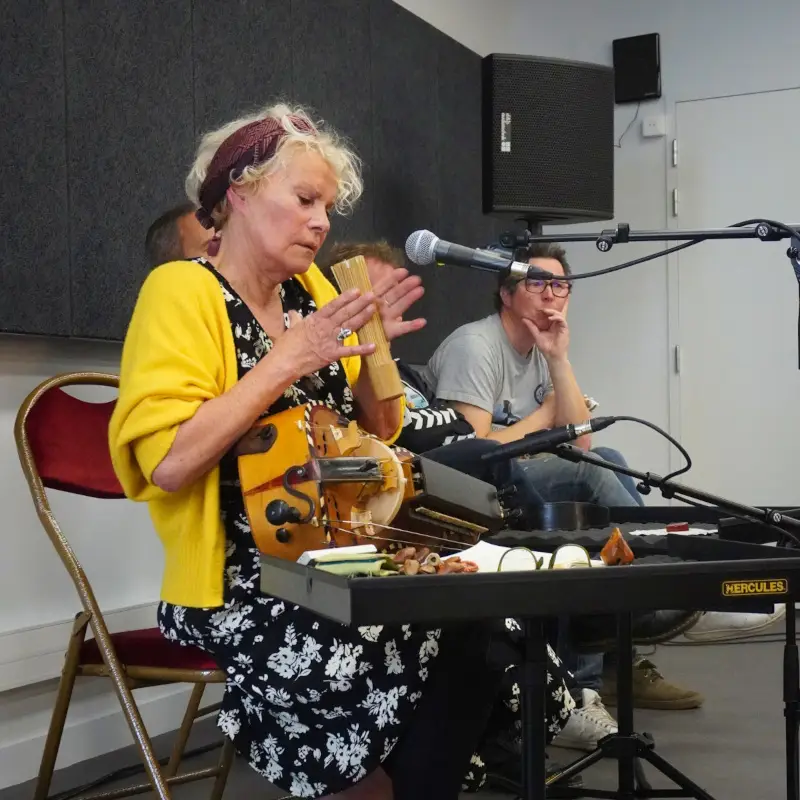 L’idée est donc d’écrire des chansons spectrales portées par une instrumentation ample, orchestrale ou minimale – épaulée cette fois-ci par la participation d’Emmanuelle Parrenin, artiste et chanteuse de folk légendaire aux arrangements (vieille à roue, épinette des vosges, harpe) qui donnera des contours de musique trad’ à la musique du duo. Il s’agira de brouiller les frontières entre musique traditionnelle, chanson, et expérimentation sonore.