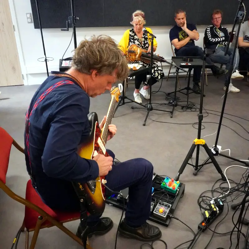 La guitare ne se contentera pas de développer le potentiel microtonal de son manche, il lui faudra tenter d’exprimer un idiome personnel, tout en fébrilité, rugosité, jaillissements mélodiques et emportements électriques.