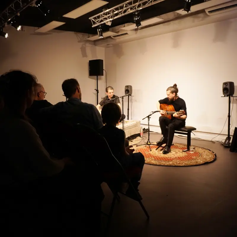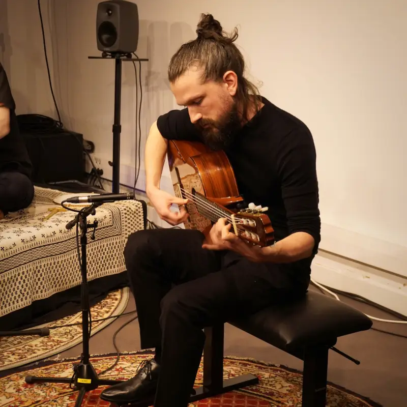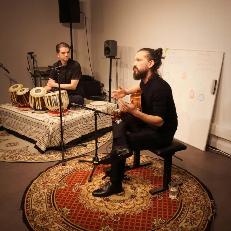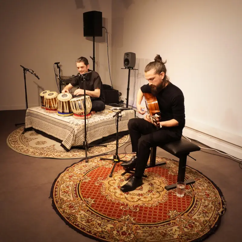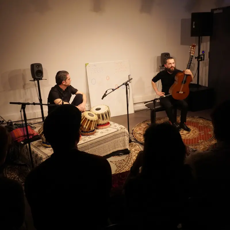 Terme aux sens multiples, le compás désigne le phénomène rythmique en général ainsi qu’une structure du temps immuable et presque sacrée. Dans le flamenco, on sculpte le temps musical autour de cycles rythmiques qui ont chacun une dialectique ; c’est-à-dire une façon d’organiser le discours musical et de nous parler. S’inspirant d’une élasticité de la pulsation que l’on retrouve chez de nombreux interprètes, Maël Goldwaser élargit les compás traditionnels pour imaginer de nouveaux cycles sur lesquels il compose sa musique. Pour nourrir ses investigations il s’est tourné vers l’Orient, la musique indienne et les Tabla plus précisément. L’Inde, parfois considérée comme la terre d’origine du flamenco, offre à tout explorateur du rythme des outils d’une richesse infinie. Aux côtés de Frédéric Cavallin, il confronte la dialectique de la guitare flamenca à celle des Tabla pour trouver un point d’équilibre respectueux de chaque tradition. Cette rencontre donne lieu à une conversation musicale au cours de laquelle on passe de l’intimité de la guitare à la virtuosité des Tabla, de la rage du flamenco à la contemplation d’une arithmétique métamorphosée par le chant des percussions. Ces élans tendent vers un horizon commun : la recherche de nouvelles dialectiques du compás.