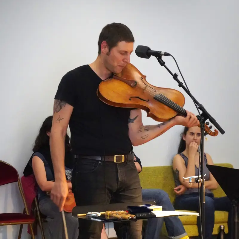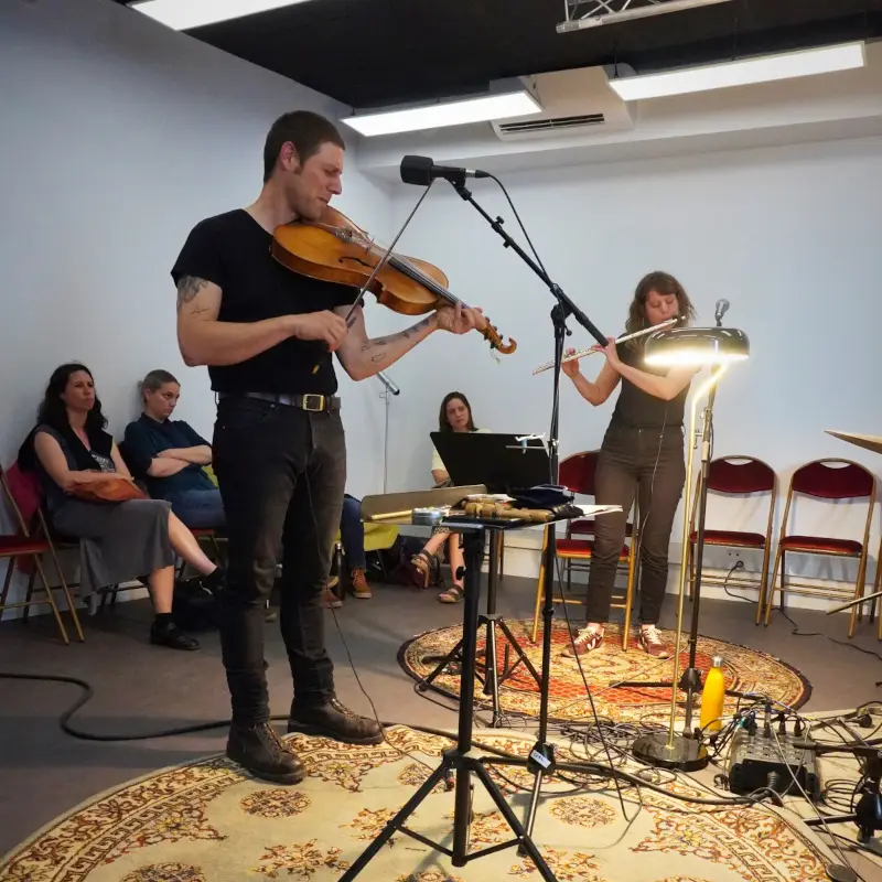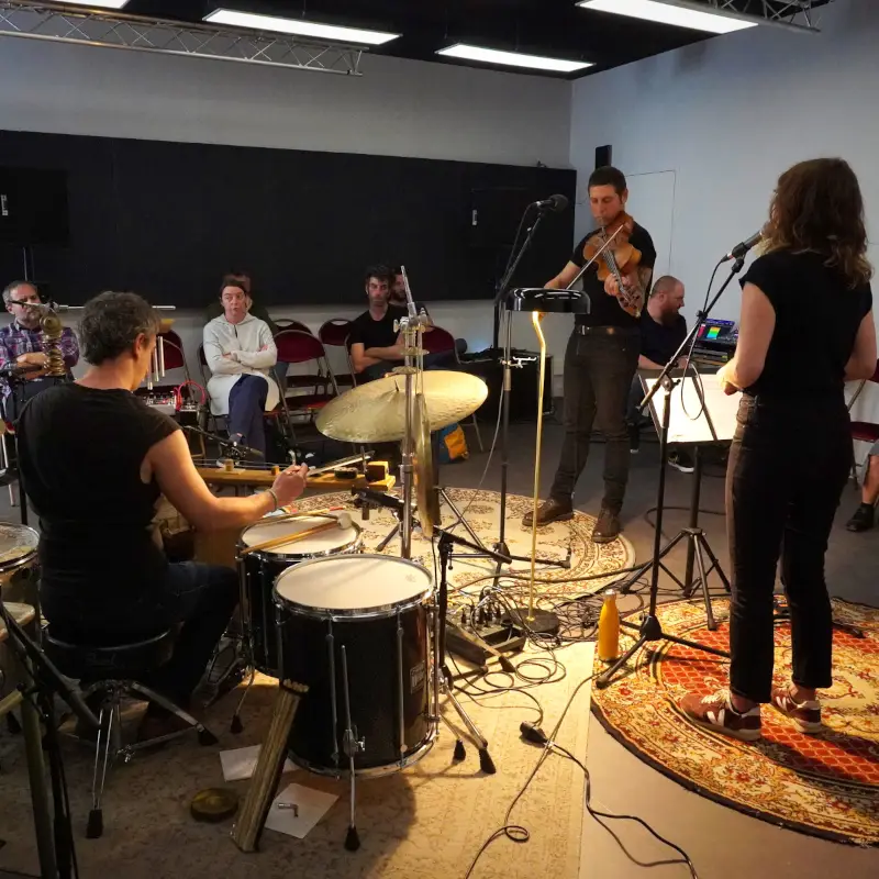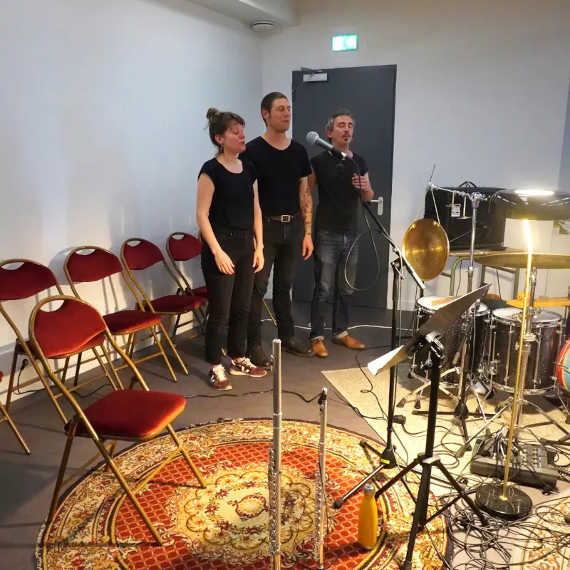 Pour cela, les artistes Baltazar Montanaro (violon baryton) et Adrien Chennebault (batteur, percussionniste) s’entourent de la chanteuse et flûtiste Elsa Lambey. Musiciens issus de différentes esthétiques, ils savent toutefois naviguer avec brio entre les musiques traditionnelles et les musiques improvisées.