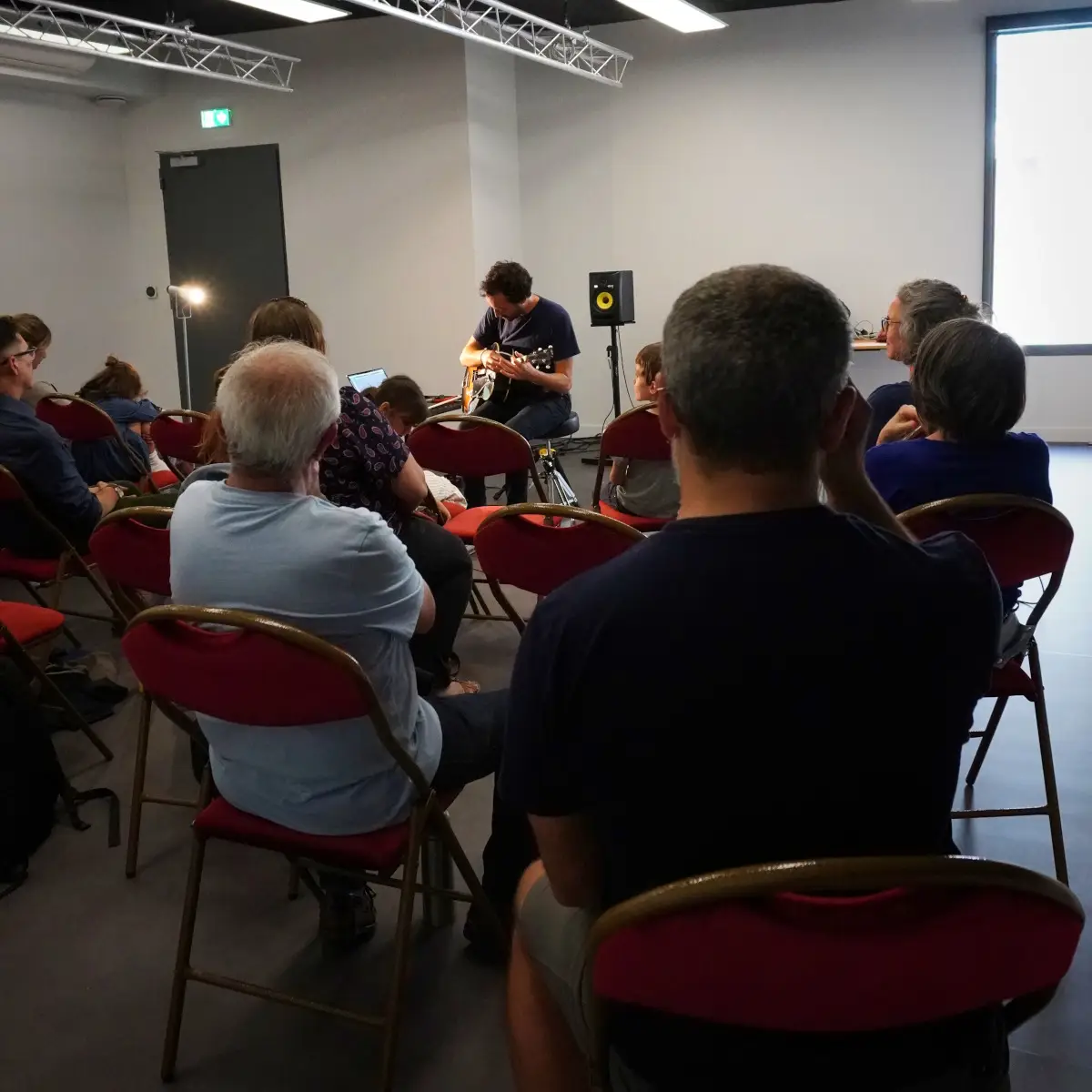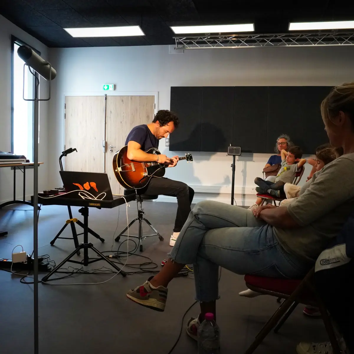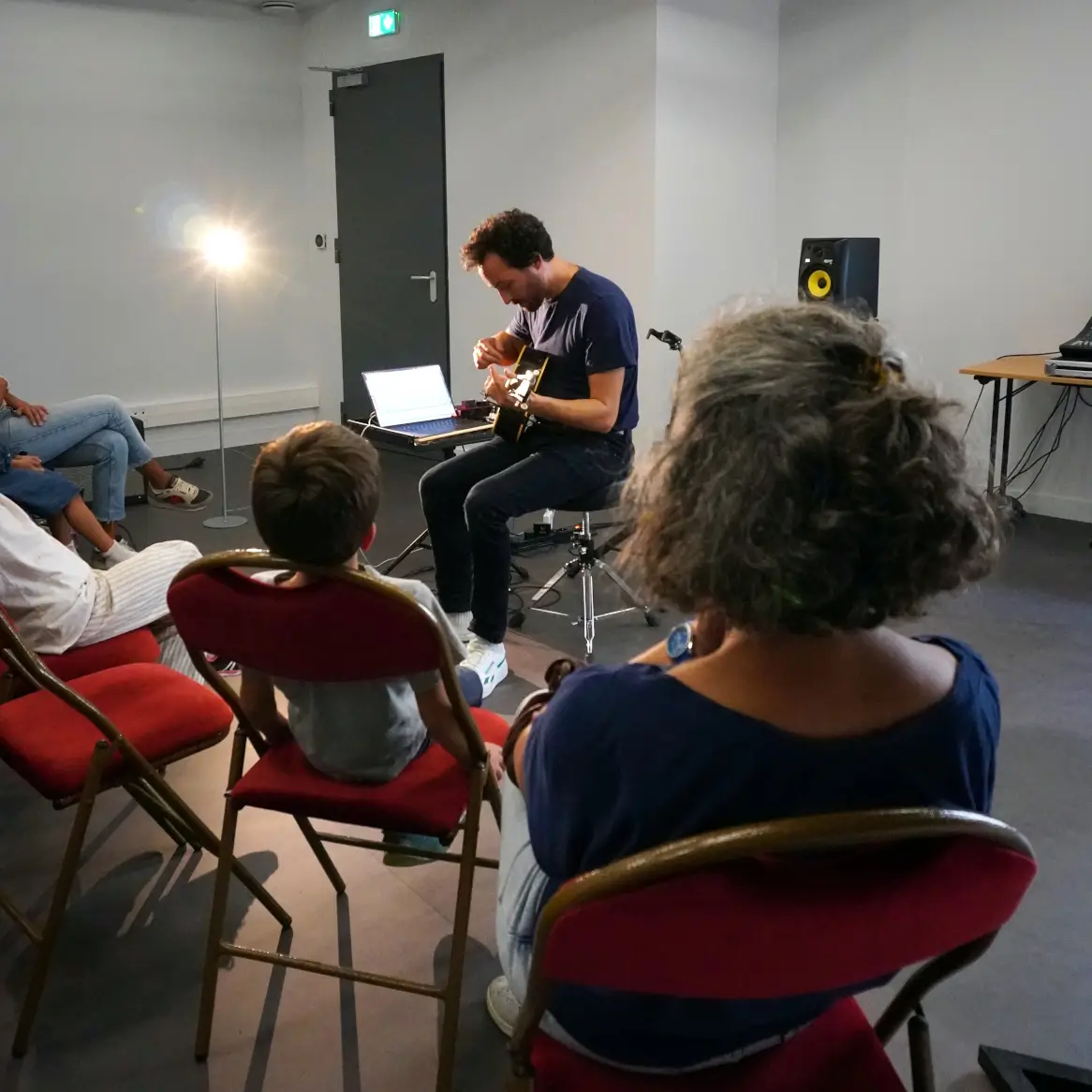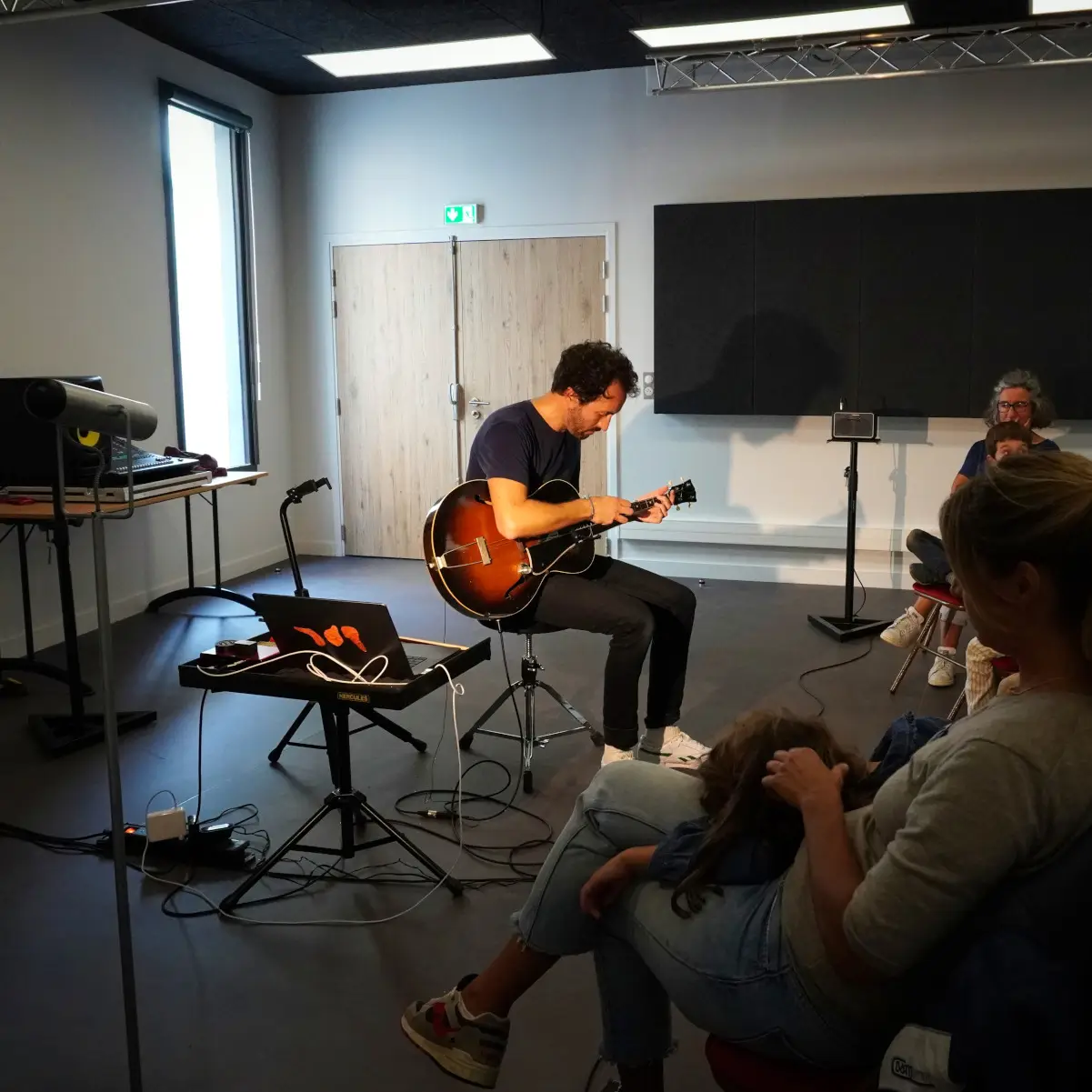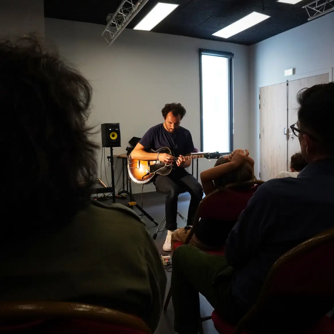 Ryan Kernoa développe, depuis un an, un solo à la guitare ténor (4 cordes aiguës uniquement) amplifiée via un amplificateur standard et deux mini-amplificateurs (lo-fi). Sur cet instrument rare et particulier, il travaille sur la répétition et les polyrythmies en créant des motifs à partir de la technique dite de tapping, sans l’aide de boucles ni d’ordinateur. Ce solo est une exploration d’un nouvel instrument, d’une nouvelle technique instrumentale et d’une forme musicale basée sur la répétition. Il questionne en ce sens le rapport du corps à l’automatisation et à la répétition du geste à travers un univers sonore minimaliste et immersif qui mélange la tonalité et la mélodie, l’abstraction et l’expression. Il s’agit de fusionner les mondes électronique, acoustique et électro-acoustique dans un élan qui ne se réduit pas à un genre musical. Il envisage ses morceaux comme des « études » ou des exercices musicaux. Ils sont le résultat d’un long processus de concentration personnelle et se pratiquent avec un dévouement presque méditatif car il s’agit de se concentrer sur des structures complexes et inhabituelles faites de segmentations et de subdivisions. La résonance des rythmes dans la rupture et les intervalles, la superposition de différentes couches de rythmes entraîne en effet la subversion du rythme et sa personnalisation. C’est ainsi sa propre perception qui va permettre de modifier ou de guider son travail.