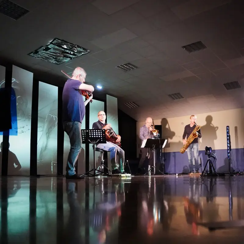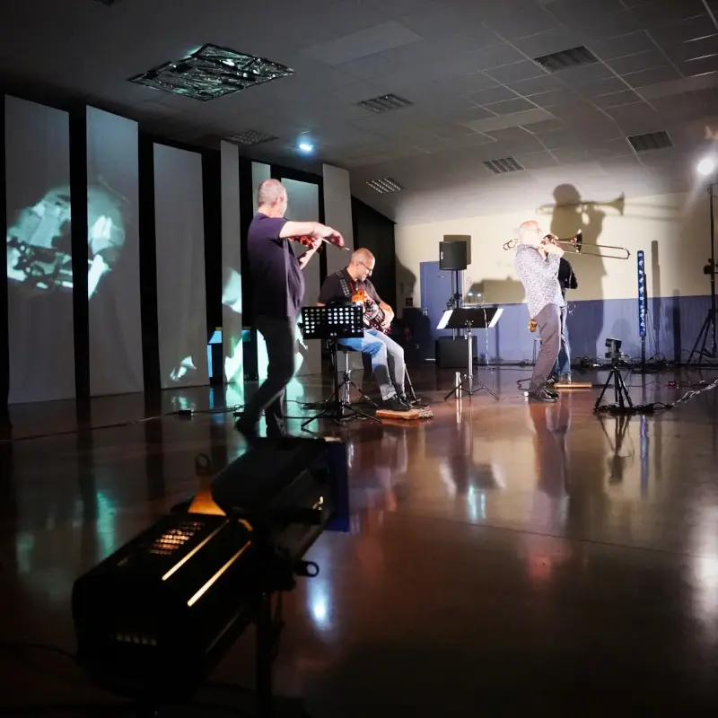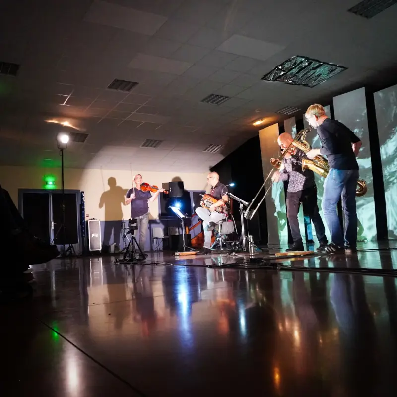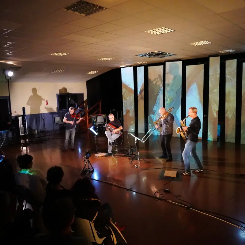 De part son instrumentarium, ce quartet sera atypique avec Romain Baudoin (le Béarnais) spécialiste des matières sonores diverses, improvisateur et Jean-Louis Pommier (le Manceau), électron libre arrangeur et aussi improvisateur. Les ambitus de leurs deux instruments auront toute la place pour s’épanouir entre le violon et le saxophone baryton.