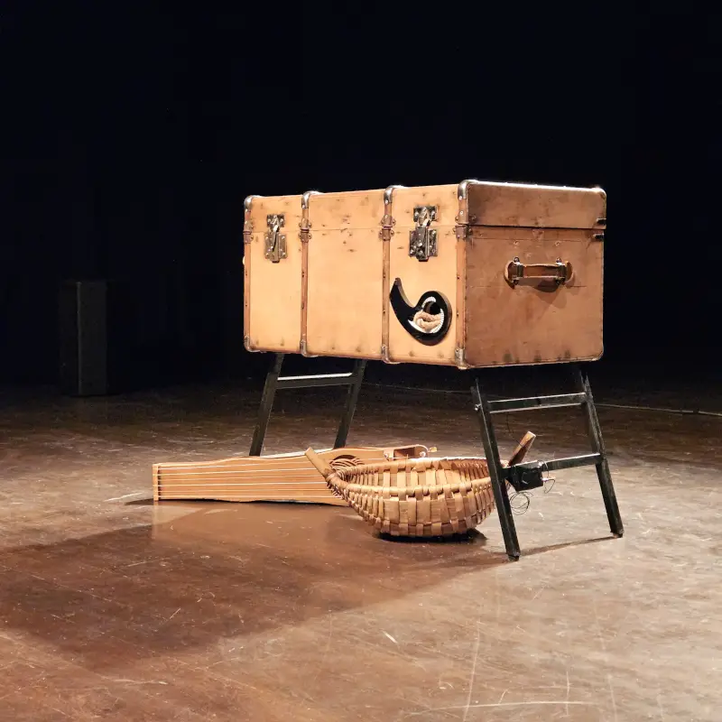 Le Roi Tostemps-mei a passé sa vie à faire la guerre. Il vieillit, et n’a pas d’héritier pour prendre sa suite. Pour ne pas que le royaume bascule dans le chaos, il doit désigner un successeur. Qui ? « Celui qui m’apportera lo naviri qui camina sus tèrra »… Un conte traditionnel de Gasconha adapté, chanté, joué, poétique et politique, mutin et merveilleux, contenu dans une malle-décor qui s’ouvre et se déplie avec le récit.