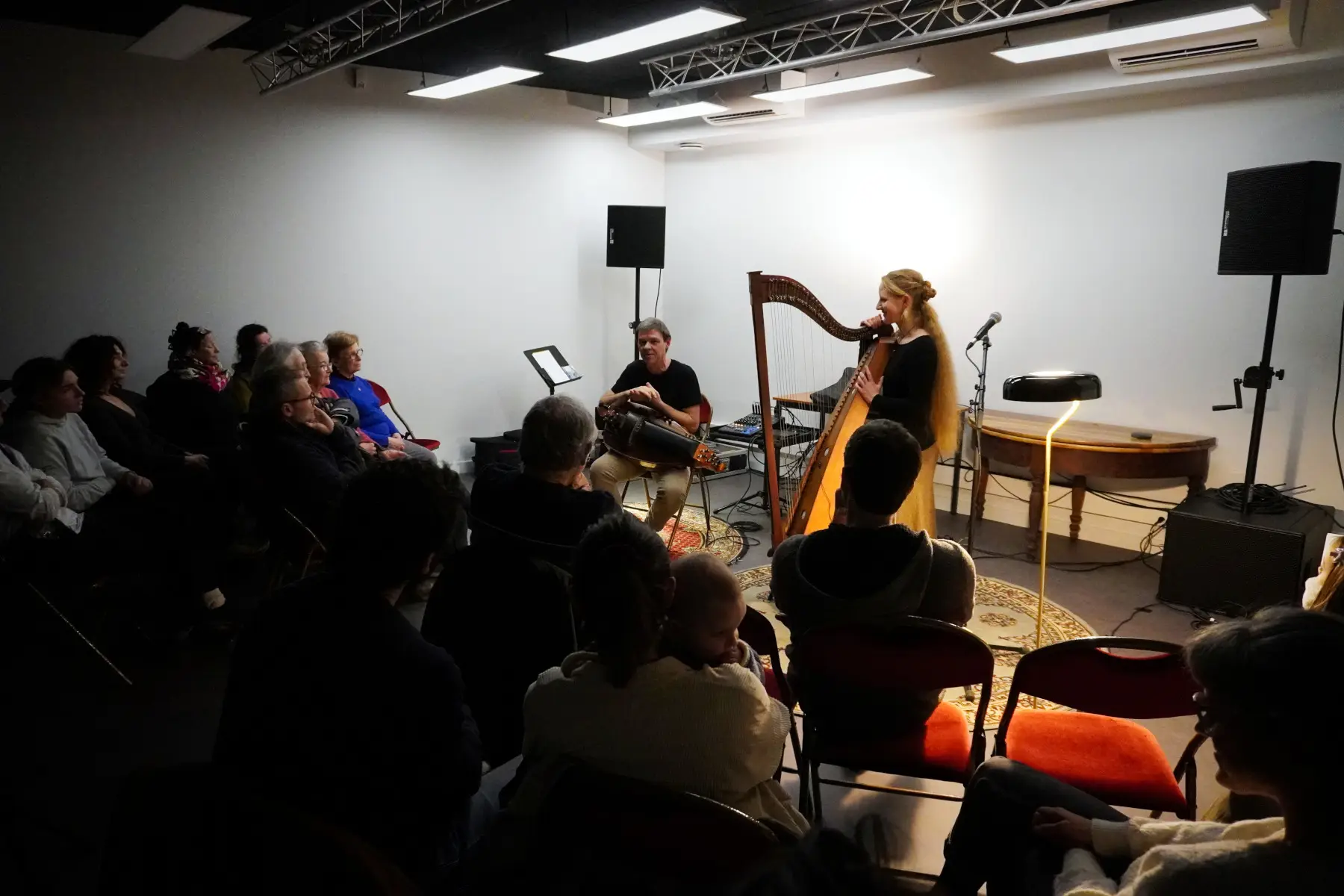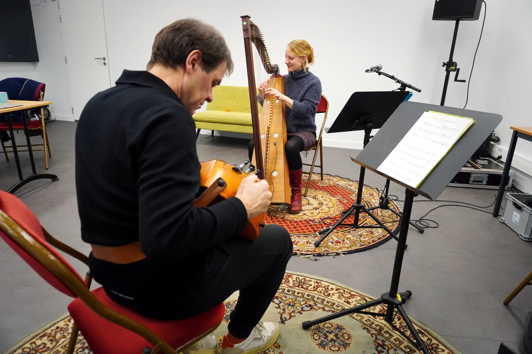 Avec la harpe de Bohème et la vielle à roue, Daniela Heiderich et Gilles Chabenat créent un véritable pont musical entre les deux rives du Rhin.