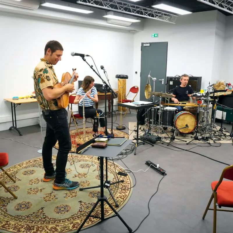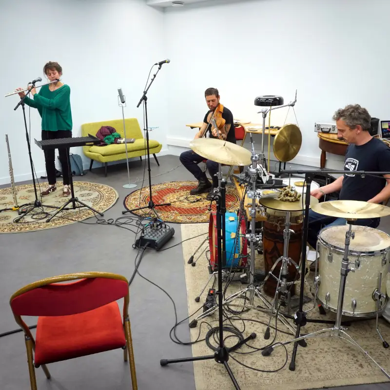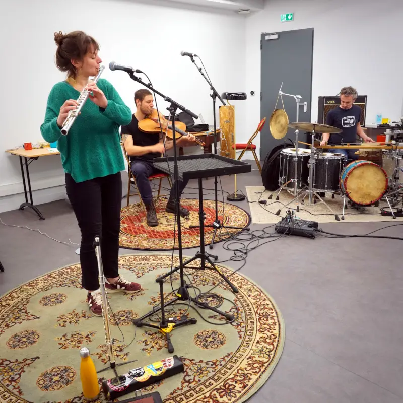 Pour cela, les artistes Baltazar Montanaro (violon baryton) et Adrien Chennebault (batteur, percussionniste) s’entourent de la chanteuse et flûtiste Elsa Lambey. Musiciens issus de différentes esthétiques, ils savent toutefois naviguer avec brio entre les musiques traditionnelles et les musiques improvisées.