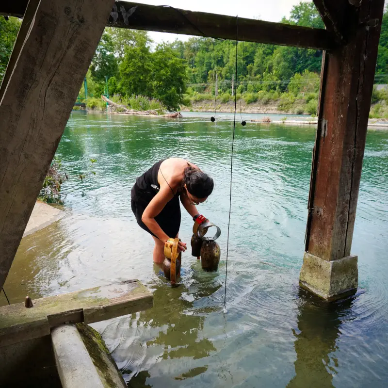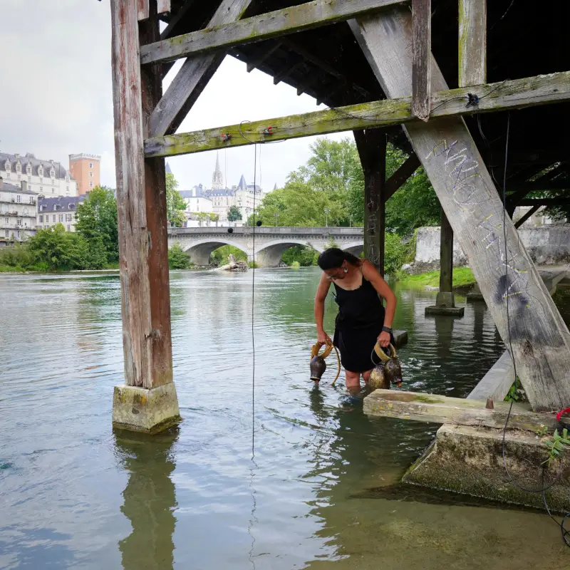 Pour la création de cette œuvre, plusieurs semaines de résidences sont prévues en Béarn. Ses premières sessions de travail lui ont notamment permis d’effectuer des recherches dans les archives sonores du CIRDOC – Institut occitan de Cultura, de faire des captations sonores lors de deux transhumances ou encore d’expérimenter des enregistrements de sonnailles dans l’eau d’un lavoir sur le Gave de Pau.