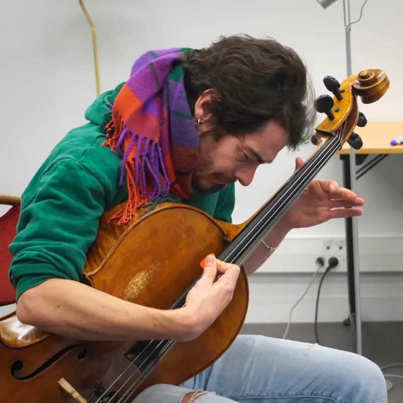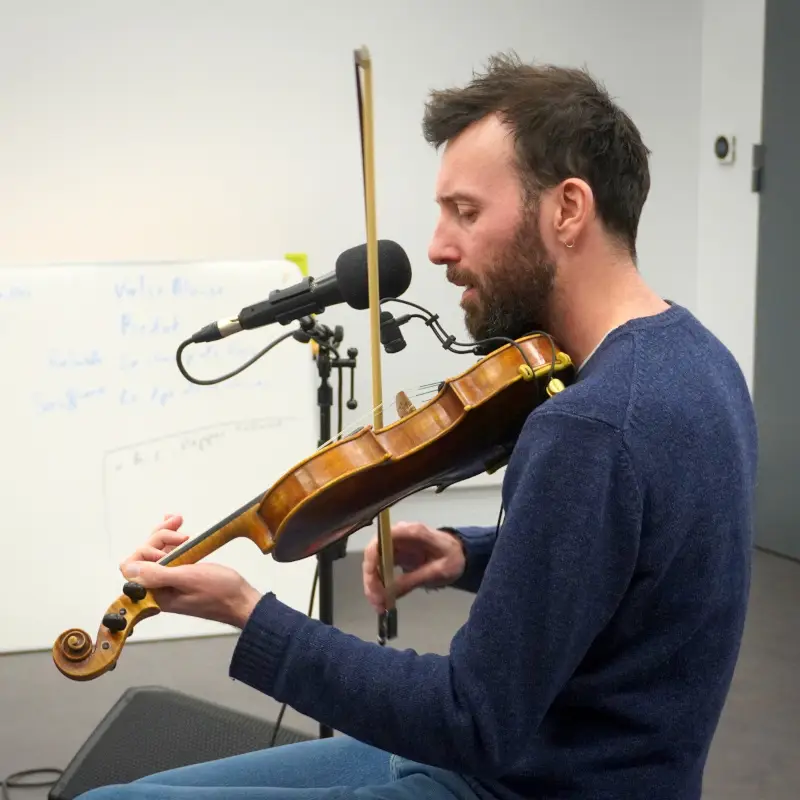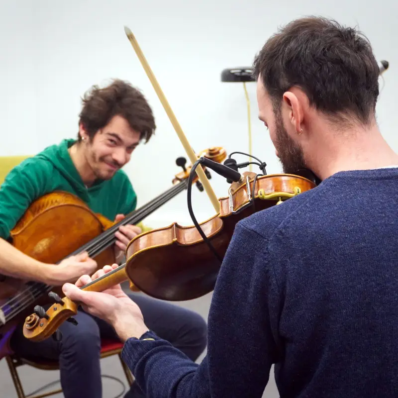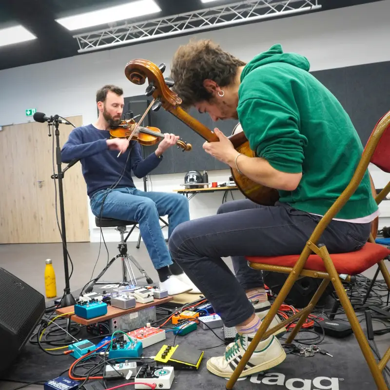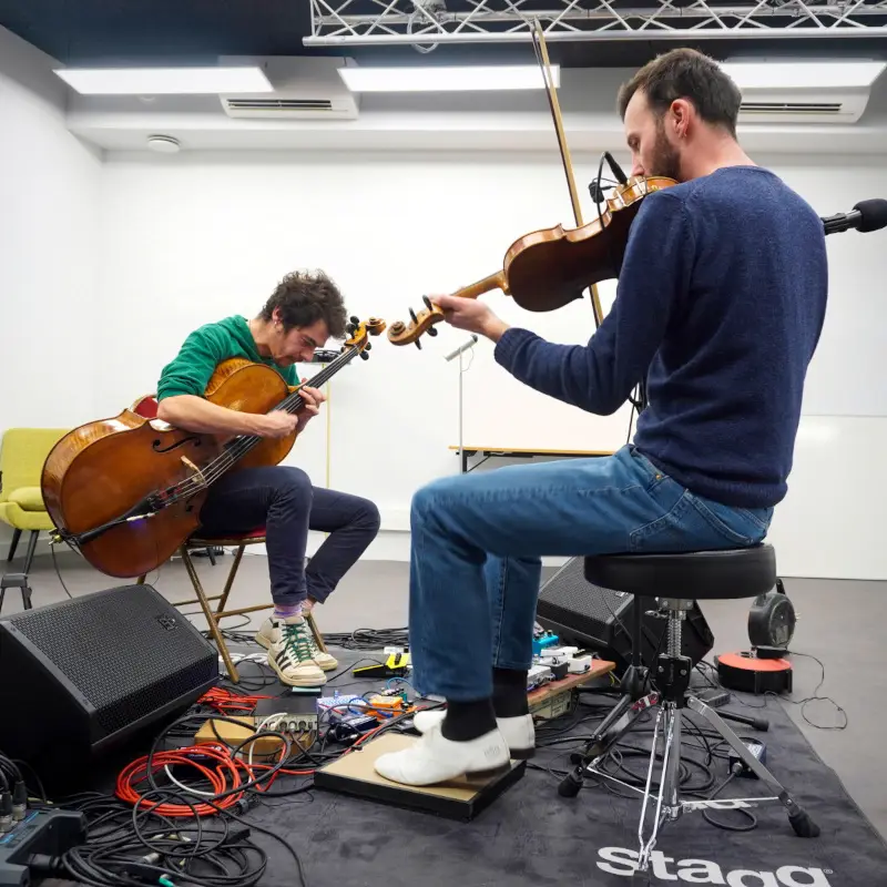 Corentin Boizot-Blaise au violon, au chant et à la podorythmie et Colin Delzant au violoncelle sont très heureux de poursuivre leurs recherches autour de l’adaptation de leur répertoire à CERC après les avoir entamées à l’UPCP Métive en Janvier.