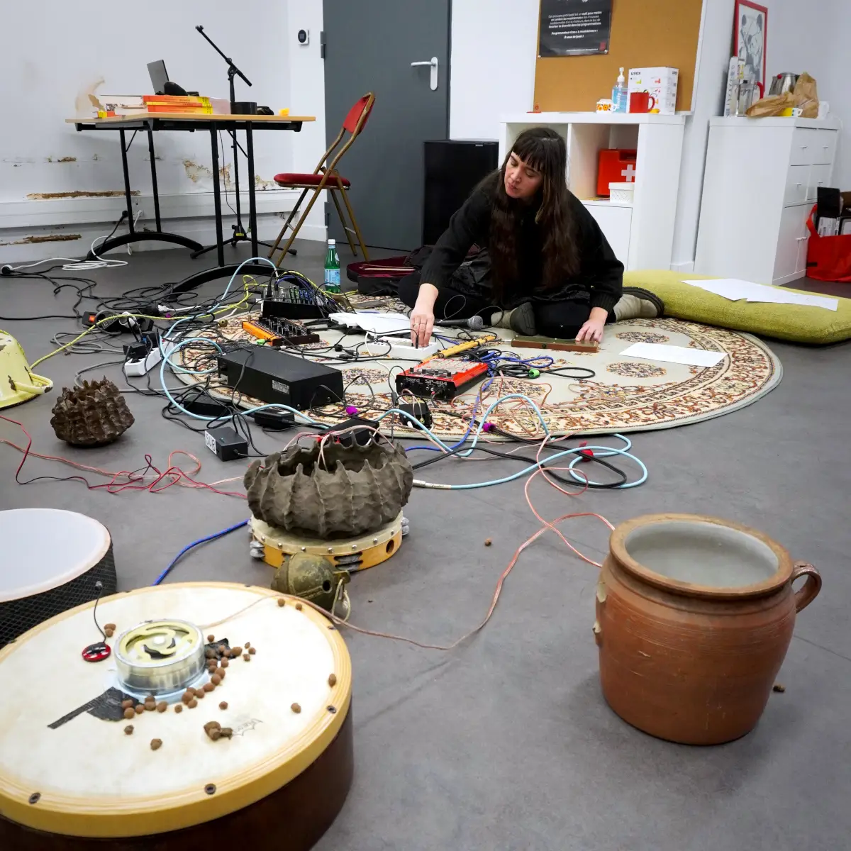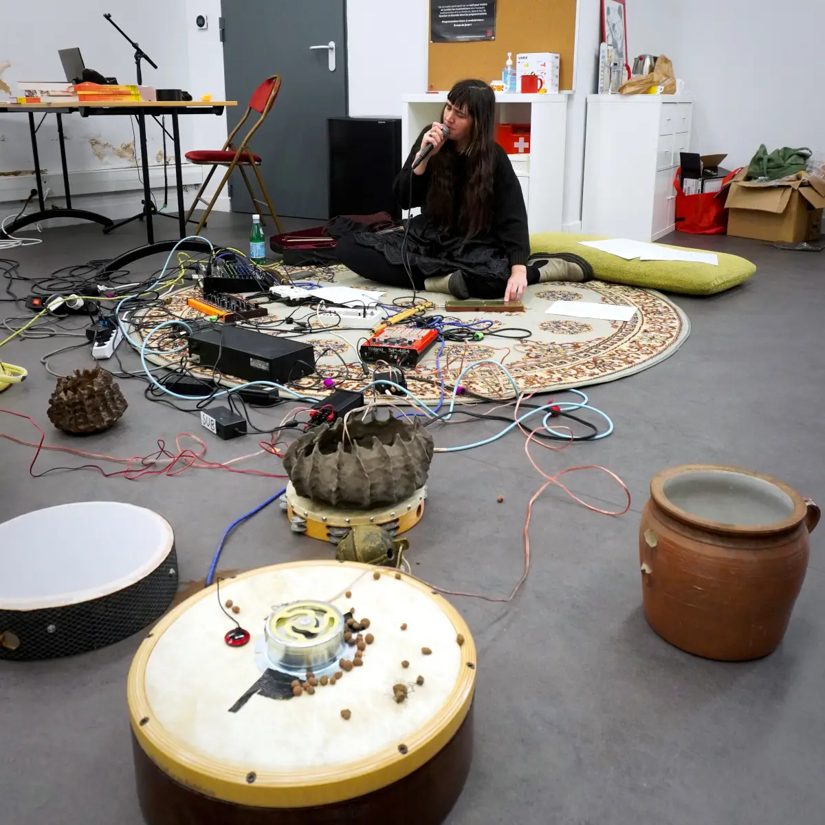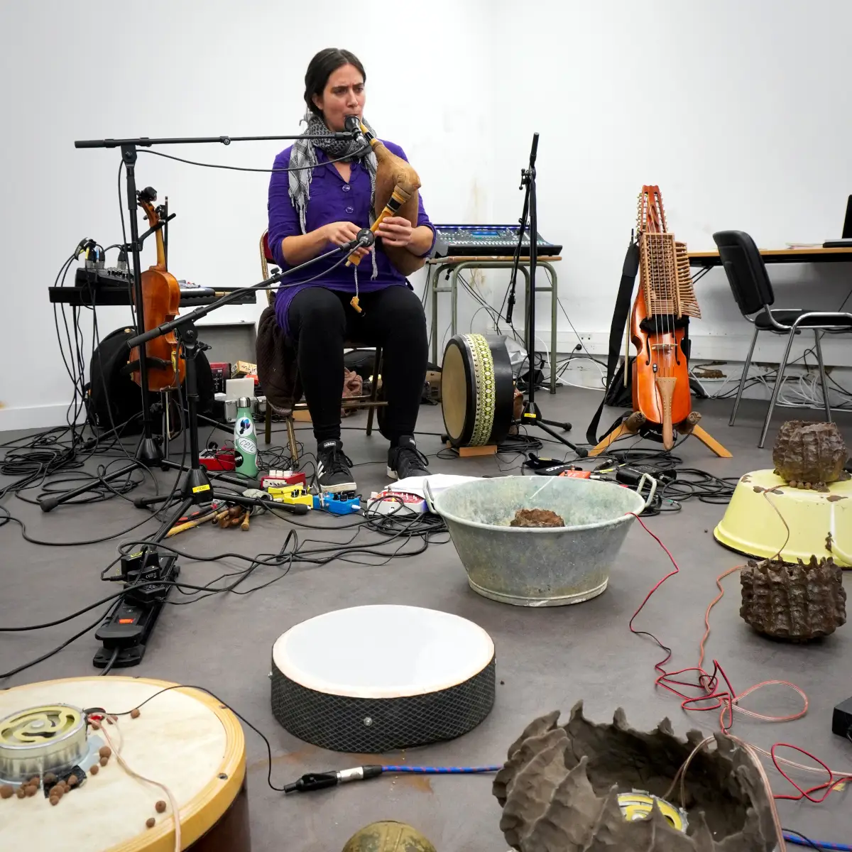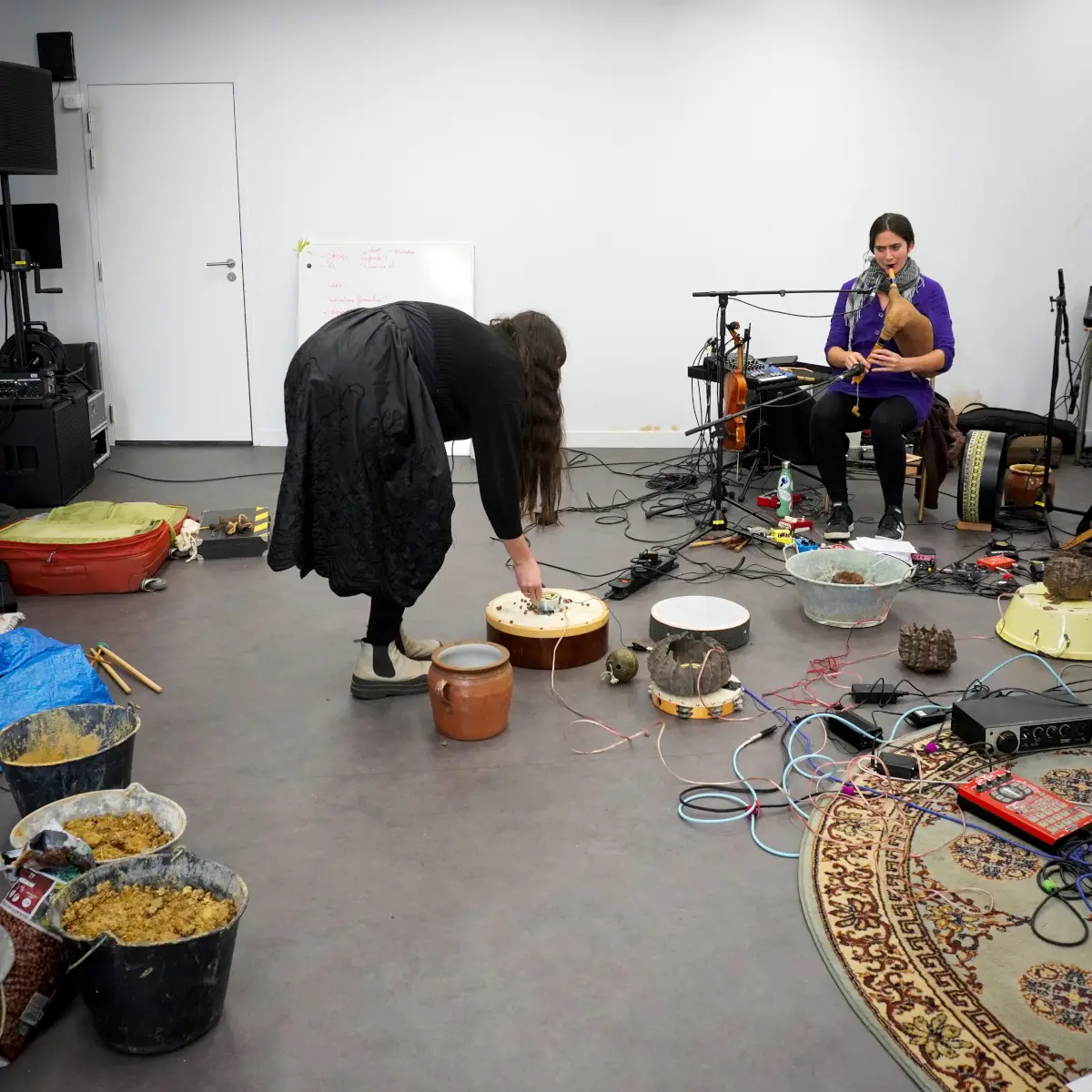 Travail sur une création musicale et sonore autour de la terre, notamment dans le son ou la matière, via des instruments en céramique ou terre crue, ou argile sous toutes ses formes, avec des envies de sons acoustiques ou éléctroacoustiques. Utiliser le répertoire musical traditionnel, mais surtout le patrimoine culturel sonore d'adresse au non-humain (formulettes, chants et paroles de nature/campagne etc.). L'idée est de marier nos univers musicaux (trad/expérimentaux) avec une grande envie de transdisciplinarité (performance, danse, argile...).