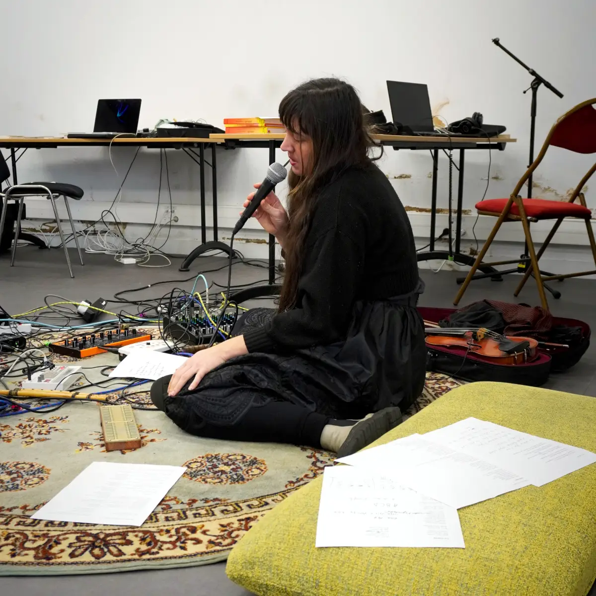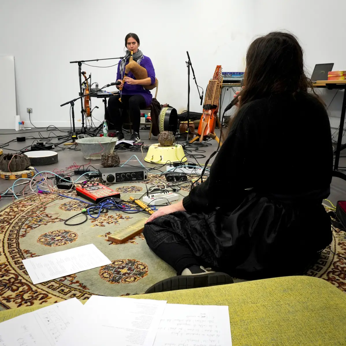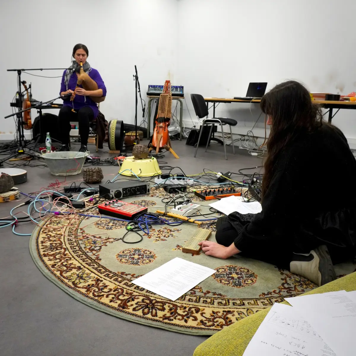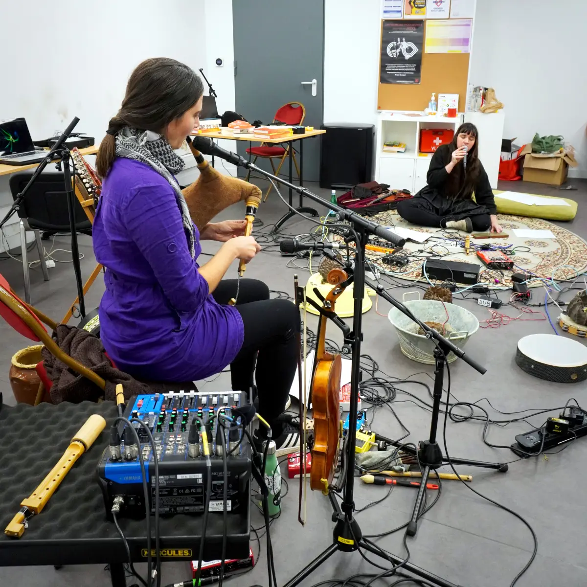 Travail sur une création musicale et sonore autour de la terre, notamment dans le son ou la matière, via des instruments en céramique ou terre crue, ou argile sous toutes ses formes, avec des envies de sons acoustiques ou éléctroacoustiques. Utiliser le répertoire musical traditionnel, mais surtout le patrimoine culturel sonore d'adresse au non-humain (formulettes, chants et paroles de nature/campagne etc.). L'idée est de marier nos univers musicaux (trad/expérimentaux) avec une grande envie de transdisciplinarité (performance, danse, argile...).