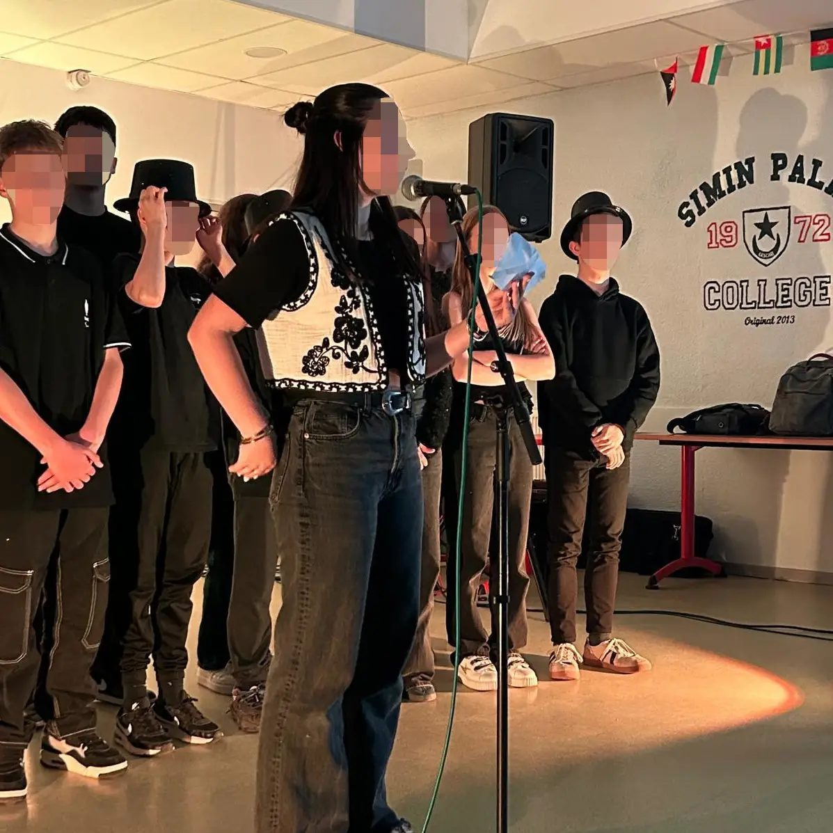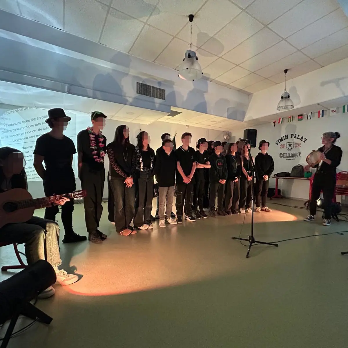 L’objectif final était, après les avoir interrogés, de réécrire les textes existants du répertoire traditionnel par un nouveau texte avec leurs idées, leurs souhaits, leurs constats, leurs décisions, leurs rêves… Ils ont présenté leur concert et partagé cette aventure lors de la restitution de ce long mais très enrichissant travail de création, le jeudi 10 avril 2025 au collège.